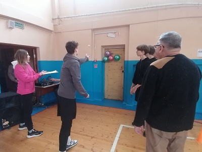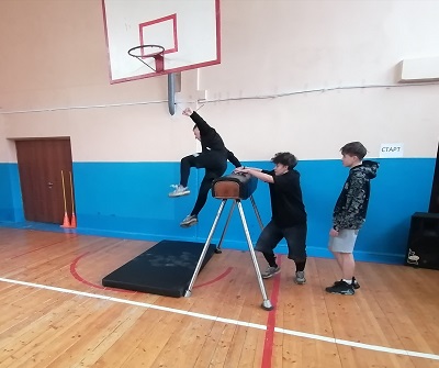 В ней приняли участие все группы 1 курса: 5 команд парней соревновались в эстафете, команда девушек подготовила танец для всех участников и зрителей.