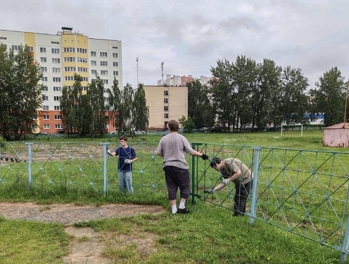 В рамках временной трудовой занятости при содействии управления по труду Жодинского горисполкома организована покраска забора на территории колледжа нашими учащимися с 28.07. по 01.08.25 года