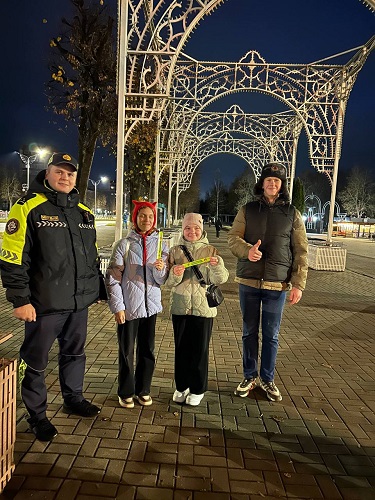 Правоохранители напомнили жителям города о правилах безопасности при передвижении на пешеходных переходах, а бойцы МООП вручили световозвращающие элементы. Они подчеркнули, что этот небольшой предмет может не только украсить сумку или куртку, но и спасти пешеходу жизнь.