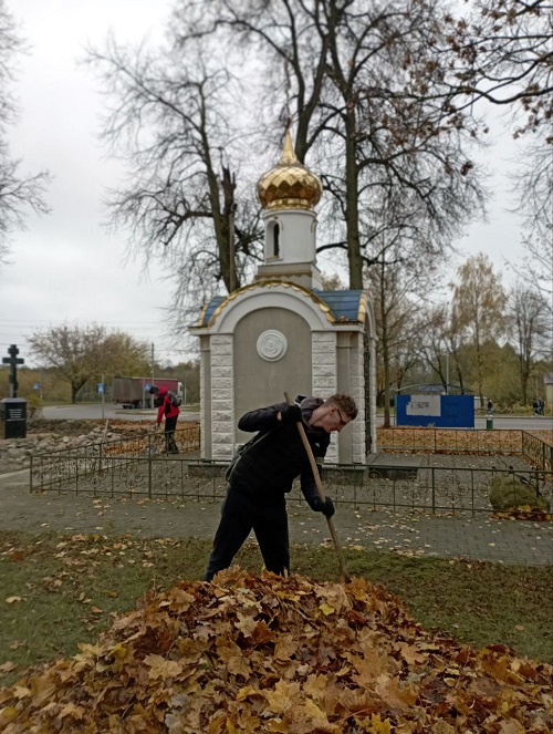 В рамках проекта волонтерский отряд ОО «БРСМ» первичной организации УО «Жодинский государственный колледж» совместно с бойцами МООП навели порядок на территории разрушенного храма, где сейчас построена часовня  Архангела Михаила.